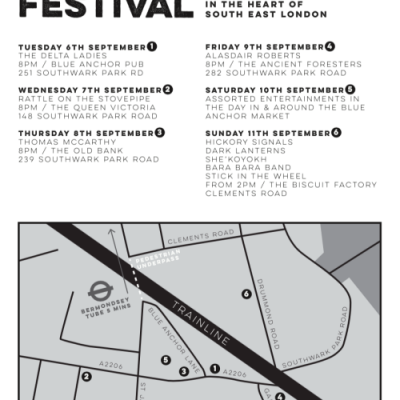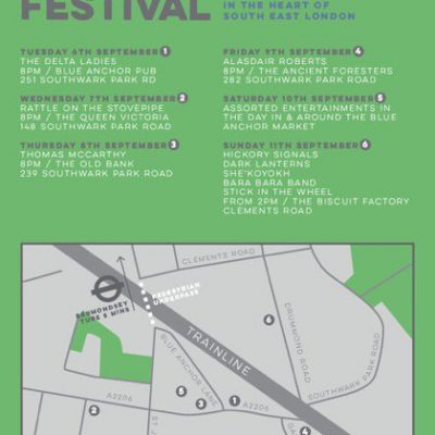 Bermondsey Folk Festival 6th – 11th September September 06, 2016 at 6pm – September 11, 2016 Various Venues If it’s a free folk festival a stone’s throw […] Read More 1st September 201618th July 2019