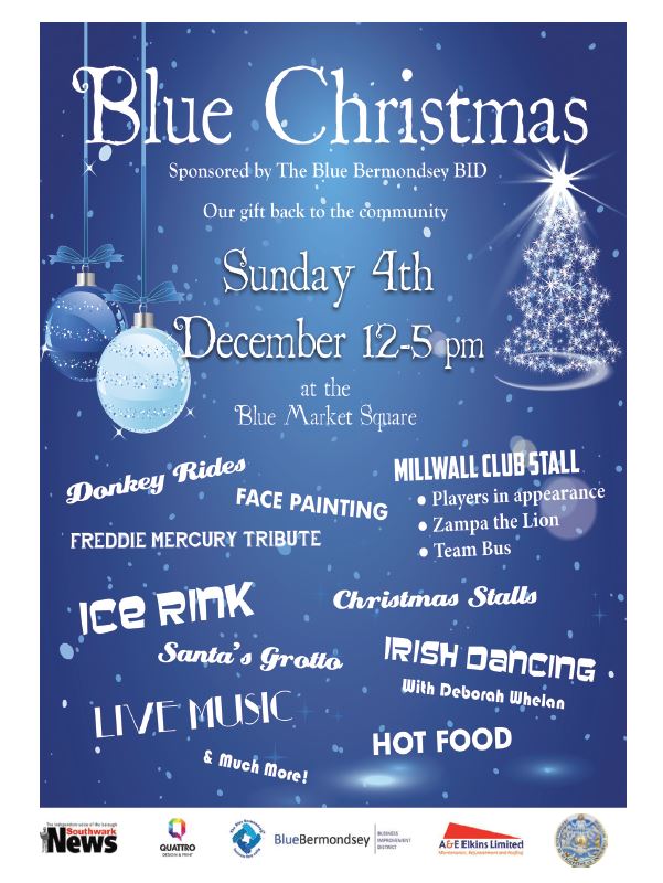 This years Blue Christmas takes place on Sunday 4th December between 12.00 – 5.00pm. Sponsored by Blue Bermondsey, United Saint Saviours and AE Elkins it is a great day out for the local community to get all in the Christmas spirit. Merry Christmas to all.